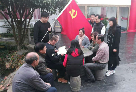 在盎然绿意的包裹下,党员们围坐在一起,集中学习了《习近平新时代中国特色社会主义思想三十讲》。在学习过程中,党员们深切感受到了在全面建设小康社会决胜阶段农村振兴和建设美丽中国的巨大成就,切身体会了习近平总书记指出的“绿水青山就是金山银山”的深刻含义。