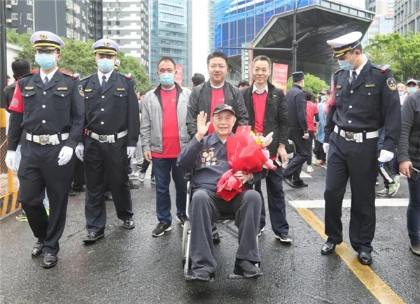 健步行揭幕仪式上,经历过解放战争、朝鲜战争,参加过孟良崮战役、淮海战役、渡江战役、抗美援朝战争,荣获国家颁发的中国人民抗日胜利70周年纪念章、建国70周年纪念章、抗美援朝70周年纪念章,今年已93岁高龄的中共党员、新四军老战士姚光彬亲临现场,共同为健步行活动鸣枪发令。现场参与者掌声雷动,致敬英雄,红色记忆不朽,革命精神永存。