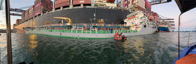 7月12日,随着“润吉7”油船为停靠在深圳盐田港的“SEASPAN BENEFACTOR”集装箱货轮缓缓注入保税燃料油(LSFO),标志着深圳鹏盾船舶燃料有限公司顺利实现在盐田港的首单加注。根据首批加油计划,“润吉7”在一周内为来自中国香港、马绍尔群岛、新加坡等各国船只加注总计7000吨以上保税燃料油(LSFO),这意味着鹏盾能源在盐田港的加注服务正式开启。