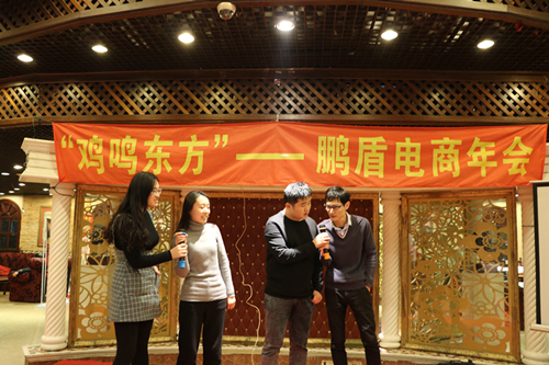 1月13日晚,美林阁雄伟、典雅的欧式大厅一片喜气洋洋,上海鹏盾电子商务股份有限公司(以下简称“鹏盾电商”)及各级子公司的领导、员工和合作伙伴齐聚一堂,参加“鸡鸣东方——鹏盾电商2017'新春年会”,共同庆祝2017新年的到来。